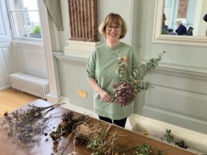 She showed how to make displays for the centre of your Christmas table, or tall floor displays in large containers, or home-made wreaths for the door – and all for little or no cost.